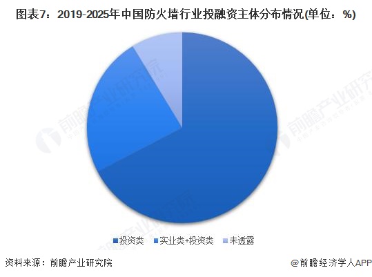 根据对防火墙行业投资主体的总结,目前我国防火墙行业的投资主体主要以投资类为主,代表性投资主体有中车资本、中电基金、普华资本等。