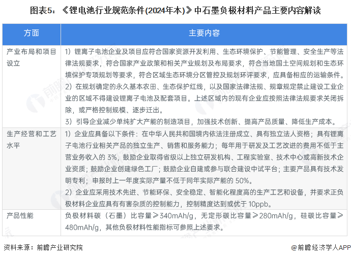 2024年5月,工信部发布《锂电池行业规范条件(2024年本)》,规范企业项目布局、生产经营和生产提供以,明确规定了碳(石墨)比容量等指标,主要内容汇总如下:
