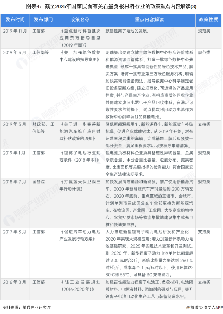 ——国家层面石墨负极材料行业政策汇总