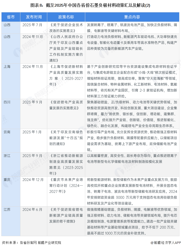 (原标题:重磅!2025年中国及31省市石墨负极材料行业政策汇总及解读(全) 人造石墨负极材料及设备纳入出口管制范围)