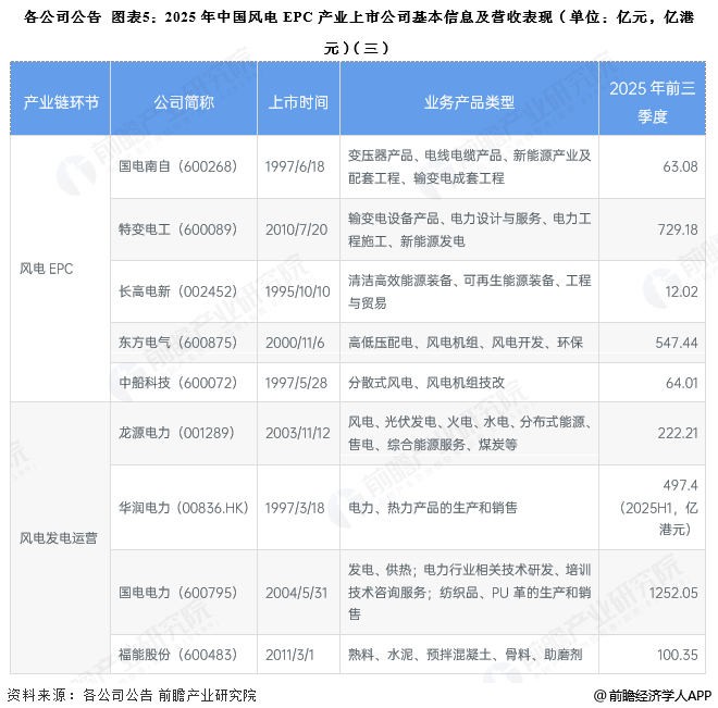 (原标题:【最全】2025年风电EPC产业上市公司全方位对比(附业务布局汇总、业绩对比、业务规划等))