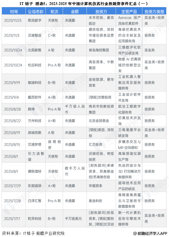 (原标题:【投资视角】启示2025:中国计算机仿真行业投融资及兼并重组分析(附投融资汇总、产业基金和兼并重组等))