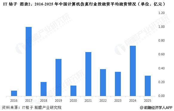 从平均单笔融资金额来看,2016-2025年,计算机仿真行业平均单笔融资金额呈现波动态势。2025年1月-11月平均单笔融资金额为0.3亿元。