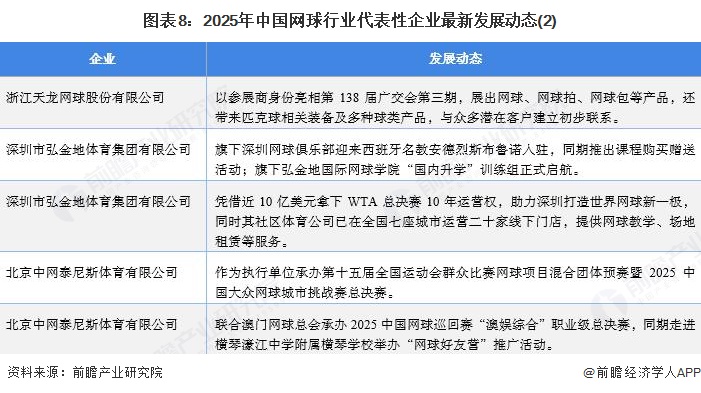 网球行业代表性企业最新发展动态
