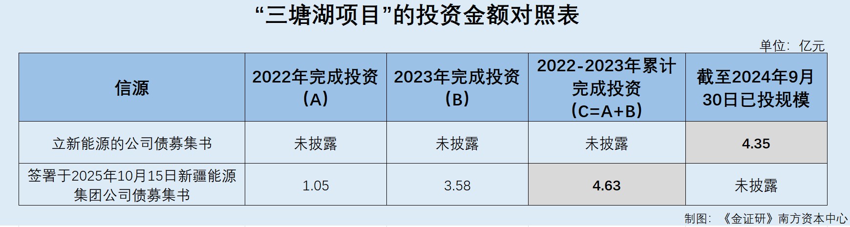 据签署日期为2025年3月14日的《新疆立新能源股份有限公司2025年面向专业投资者公开发行公司债券募集说明书》(以下简称“公司债募集书”),截至2024年9月30日,立新能源的主要在建工程包括“三塘湖项目”,已投规模为4.35亿元。