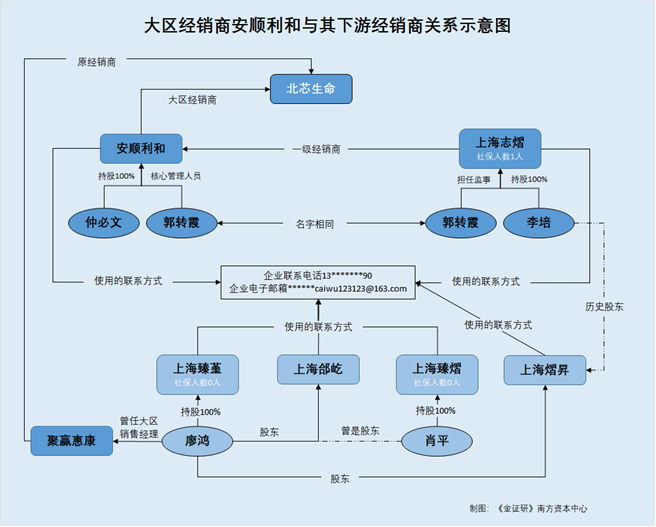 即国科恒泰2021年递交的招股书显示,肖平、廖鸿彼时通过上海郃屹间接持有国科恒泰的控股子公司国科恒誉的股权。彼时,廖鸿为聚赢惠康的大区经理,肖平为上海臻熠的股东。而聚赢惠康、上海臻熠均为国科恒泰2018-2020年及2021年1-6月的二级经销商。市场监督管理局数据显示,2024年,上海郃屹所用企业联系电话与安顺利和一致。