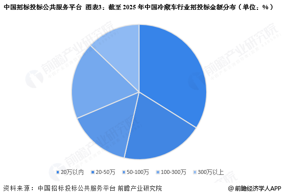 中国冷藏车行业招投标金额集中在20万以下