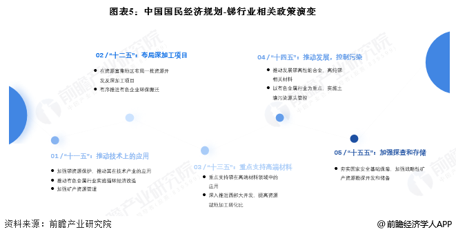 锑行业前期发展受限于工业水平,相关政策主要以开发和保护为主。随着我国工业水平的不断上升,以及西部大开发的不断深入,国家对于锑越发重视,尤其是当战略性新兴产业发展被提上日程后,锑产品的重要性越发得到体现;同时国家对于环境保护的要求越发提高,对于锑造成的污染也非常重视并制定了治理的相关目标及要求。