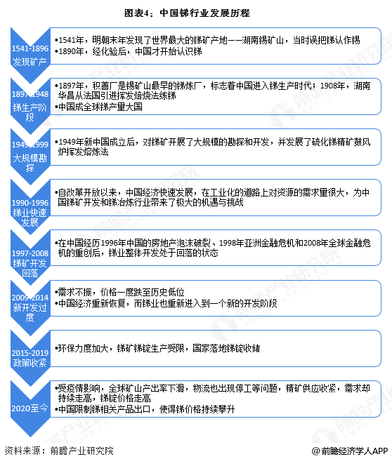 行业发展历程:锑行业发展较早,目前进入供不应求阶段