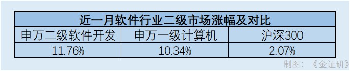 在二级市场的表现上,截至2026年1月29日根据申万行业划分,申万计算机近一个月涨幅为10.34%,而申万软件开发近一个月的涨幅为11.76%。