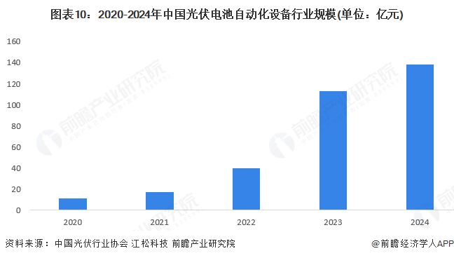 近年来,光伏设备领域的数字化、自动化趋势明显,自动化设备既能提升生产效率,也能通过自动化控制,降低单位能耗,进而最大限度地降低电池和组件每瓦的成本。初步测算,2024年中国光伏电池自动化设备行业规模超过130亿元。