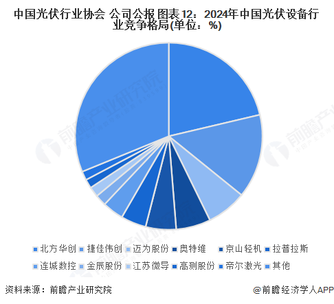 2024年,北方华创光伏设备行业收入达到277.1亿元,市场份额占比超过21%,捷佳伟创光伏设备行业营收达到188.9亿元,市场份额占比达到15%。迈为股份、奥特维市场份额占据也均在5%以上。