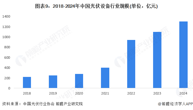 2018年以来中国光伏设备行业规模持续增长。2024年,光伏行业协会数据显示,中国国光伏设备产业规模超过1300亿元,同比增长18.2%。