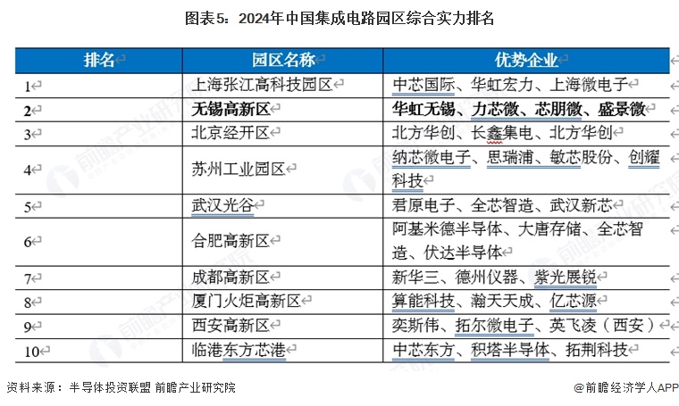 产业园区已成为推动中国半导体行业发展的关键力量,凭借专项政策扶持、优越的地理区位、人才吸引策略及资源共享机制等手段,有效促进了集成电路企业的落地与集聚,形成了多个产业集群。2024年12月,半导体投资联盟等机构披露2024年中国集成电路园区综合实力排行榜,其中无锡高新区排名第二,综合实力较强。