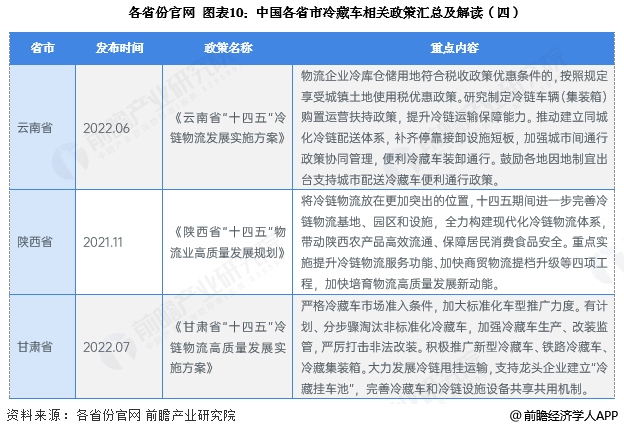 目前,我国主要省市冷藏车相关政策如下表所示: