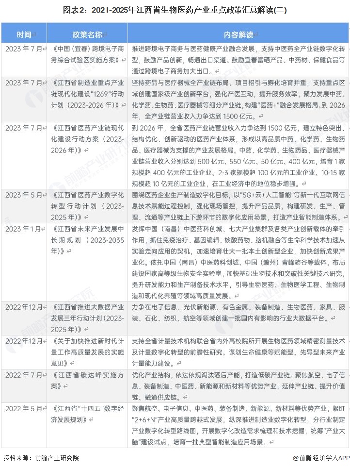 1、江西省生物医药产业政策环境