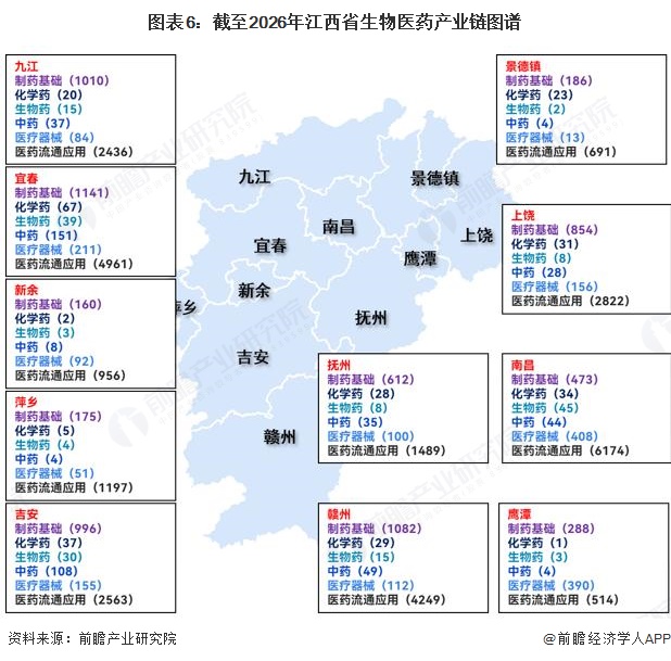 从各区发展情况来看,中药以南昌、宜春等地为重点区域,化药以南昌、赣州、景德镇等地为重点区域,生物药以抚州、吉安等地为重点区域,医疗器械以南昌为重点区域。