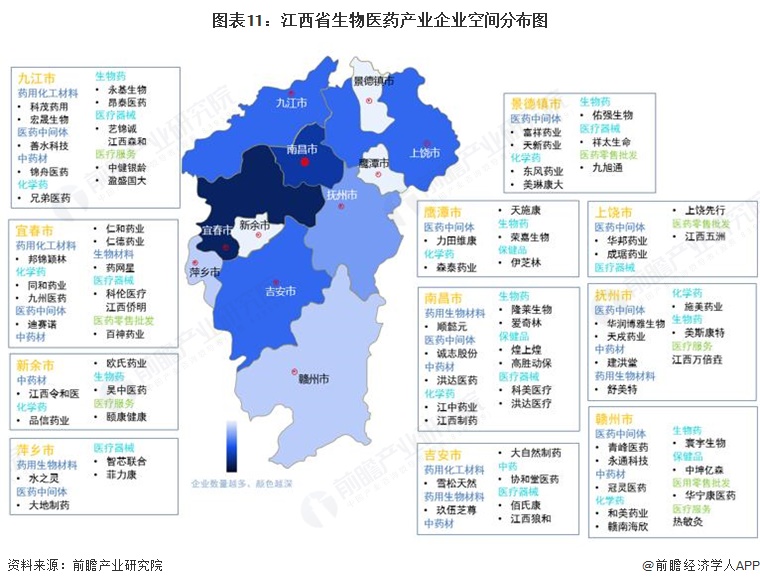 ——江西省生物医药产业企业空间布局