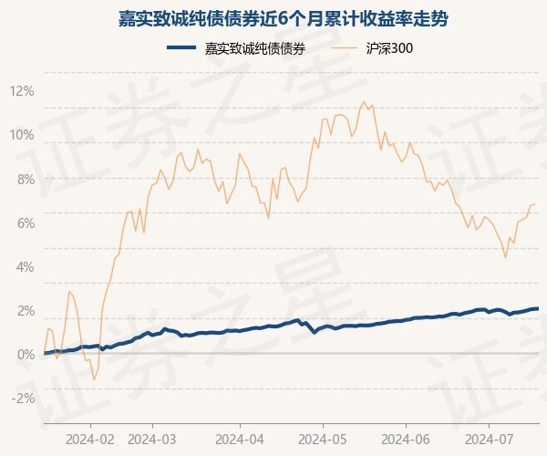 证券之星消息,7月17日,嘉实致诚纯债债券最新单位净值为1.0223元,累计净值为1.043元,较前一交易日上涨0.01%。历史数据显示该基金近1个月上涨0.43%,近3个月上涨0.93%,近6个月上涨2.53%,近1年上涨3.32%。该基金近6个月的累计收益率走势如下图: