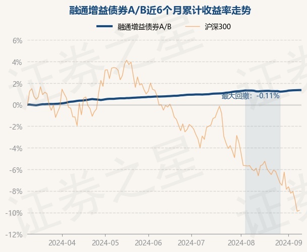 证券之星消息,9月9日,融通增益债券A/B最新单位净值为1.3954元,累计净值为1.4954元,较前一交易日上涨0.01%。历史数据显示该基金近1个月上涨0.06%,近3个月上涨0.59%,近6个月上涨1.35%,近1年上涨3.07%。该基金近6个月的累计收益率走势如下图:
