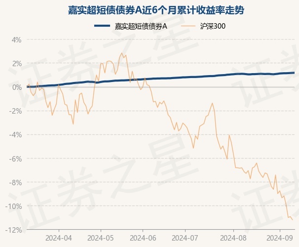 证券之星消息,9月11日,嘉实超短债债券A最新单位净值为1.0542元,累计净值为1.1409元,较前一交易日上涨0.01%。历史数据显示该基金近1个月上涨0.37%,近3个月上涨0.74%,近6个月上涨1.43%,近1年上涨3.18%。该基金近6个月的累计收益率走势如下图:
