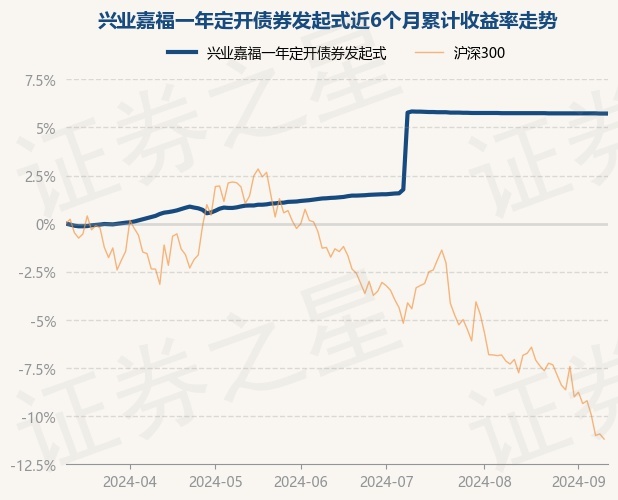 证券之星消息,9月11日,兴业嘉福一年定开债券发起式最新单位净值为1.0665元,累计净值为1.1651元,较前一交易日上涨0.0%。历史数据显示该基金近1个月下跌0.02%,近3个月上涨4.35%,近6个月上涨5.72%,近1年上涨8.44%。该基金近6个月的累计收益率走势如下图: