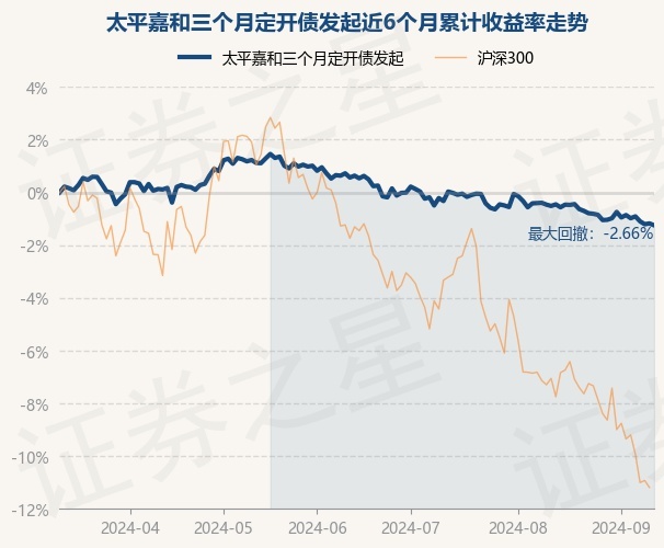 证券之星消息,9月11日,太平嘉和三个月定开债发起最新单位净值为0.998元,累计净值为0.998元,较前一交易日下跌0.07%。历史数据显示该基金近1个月下跌0.79%,近3个月下跌1.87%,近6个月下跌1.25%,近1年下跌0.74%。该基金近6个月的累计收益率走势如下图:
