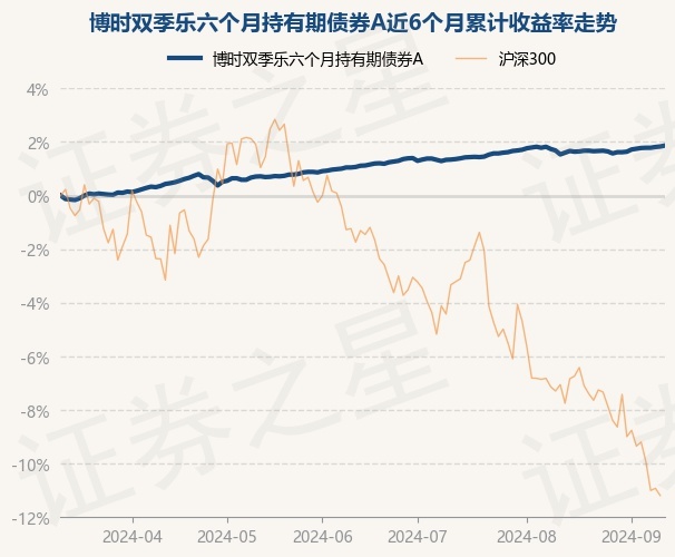 证券之星消息,9月11日,博时双季乐六个月持有期债券A最新单位净值为1.1086元,累计净值为1.1086元,较前一交易日上涨0.04%。历史数据显示该基金近1个月上涨0.18%,近3个月上涨0.81%,近6个月上涨1.87%,近1年上涨5.38%。该基金近6个月的累计收益率走势如下图: