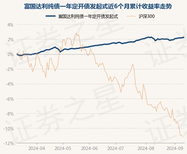 证券之星消息,9月11日,富国达利纯债一年定开债发起式最新单位净值为1.041元,累计净值为1.1077元,较前一交易日上涨0.06%。历史数据显示该基金近1个月上涨0.21%,近3个月上涨1.1%,近6个月上涨2.28%,近1年上涨4.73%。该基金近6个月的累计收益率走势如下图: