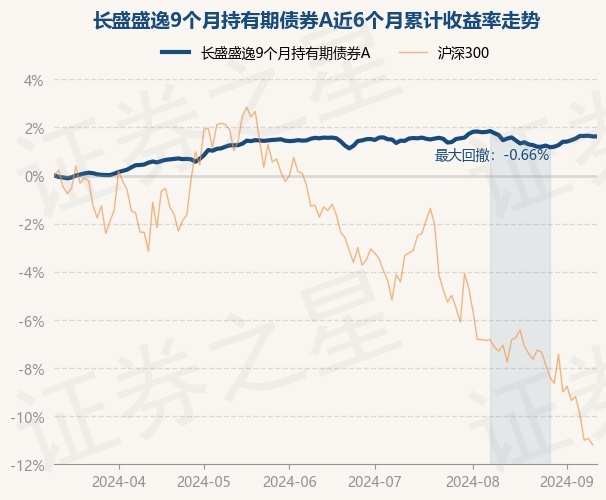 证券之星消息,9月11日,长盛盛逸9个月持有期债券A最新单位净值为1.0447元,累计净值为1.0556元,较前一交易日上涨0.0%。历史数据显示该基金近1个月下跌0.03%,近3个月上涨0.12%,近6个月上涨1.65%,近1年上涨4.39%。该基金近6个月的累计收益率走势如下图:
