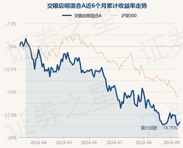 证券之星消息,9月11日,交银启明混合A最新单位净值为0.909元,累计净值为1.075元,较前一交易日上涨0.41%。历史数据显示该基金近1个月下跌3.81%,近3个月下跌11.91%,近6个月下跌16.59%,近1年下跌26.9%。该基金近6个月的累计收益率走势如下图: