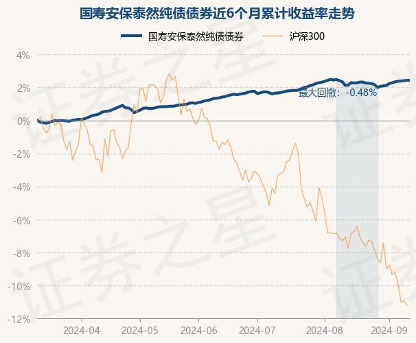 证券之星消息,9月11日,国寿安保泰然纯债债券最新单位净值为1.0719元,累计净值为1.0719元,较前一交易日上涨0.0%。历史数据显示该基金近1个月上涨0.1%,近3个月上涨1.1%,近6个月上涨2.45%,近1年上涨4.77%。该基金近6个月的累计收益率走势如下图: