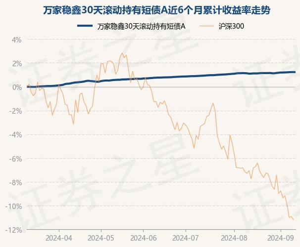 万家稳鑫30天滚动持有短债A为债券型-中短债基金,根据最新一期基金季报显示,该基金资产配置:无股票类资产,债券占净值比104.6%,现金占净值比0.09%。