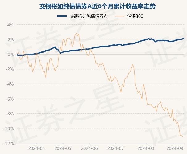 证券之星消息,9月11日,交银裕如纯债债券A最新单位净值为1.0918元,累计净值为1.2348元,较前一交易日上涨0.05%。历史数据显示该基金近1个月上涨0.21%,近3个月上涨1.19%,近6个月上涨2.11%,近1年上涨5.24%。该基金近6个月的累计收益率走势如下图:
