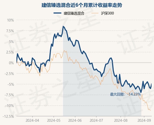 证券之星消息,9月11日,建信臻选混合最新单位净值为0.7229元,累计净值为0.7229元,较前一交易日上涨1.13%。历史数据显示该基金近1个月下跌0.44%,近3个月下跌7.86%,近6个月下跌4.99%,近1年下跌16.17%。该基金近6个月的累计收益率走势如下图: