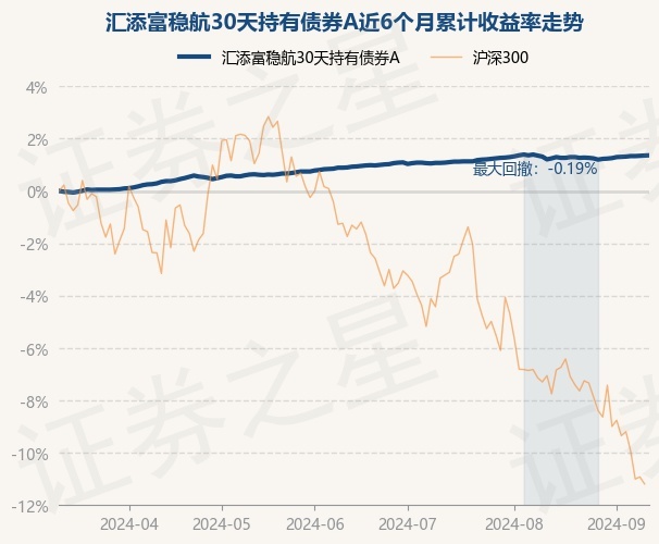 证券之星消息,9月11日,汇添富稳航30天持有债券A最新单位净值为1.0494元,累计净值为1.0494元,较前一交易日上涨0.01%。历史数据显示该基金近1个月上涨0.05%,近3个月上涨0.47%,近6个月上涨1.36%,近1年上涨4.2%。该基金近6个月的累计收益率走势如下图: