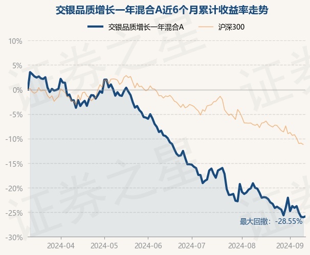 证券之星消息,9月11日,交银品质增长一年混合A最新单位净值为0.5771元,累计净值为0.5771元,较前一交易日上涨0.23%。历史数据显示该基金近1个月下跌7.29%,近3个月下跌18.82%,近6个月下跌25.85%,近1年下跌36.27%。该基金近6个月的累计收益率走势如下图: