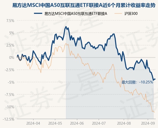 证券之星消息,9月11日,易方达MSCI中国A50互联互通ETF联接A最新单位净值为0.7261元,累计净值为0.7261元,较前一交易日上涨0.0%。历史数据显示该基金近1个月下跌2.71%,近3个月下跌6.5%,近6个月下跌4.74%,近1年下跌9.12%。该基金近6个月的累计收益率走势如下图: