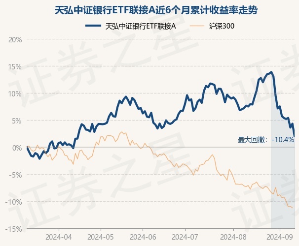 证券之星消息,9月11日,天弘中证银行ETF联接A最新单位净值为1.3073元,累计净值为1.3073元,较前一交易日下跌2.21%。历史数据显示该基金近1个月下跌5.23%,近3个月下跌2.37%,近6个月上涨2.06%,近1年上涨6.39%。该基金近6个月的累计收益率走势如下图: