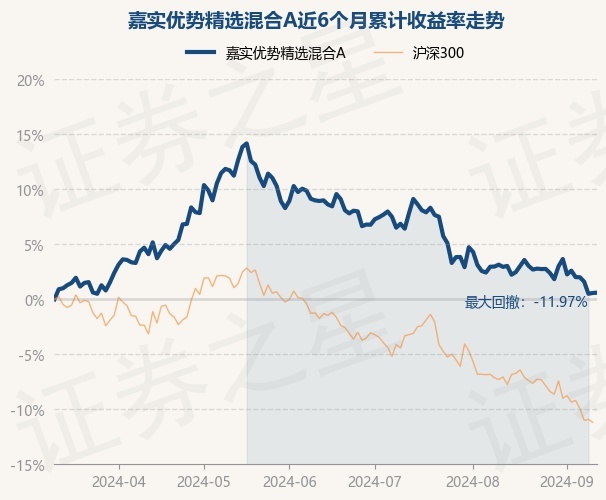 证券之星消息,9月11日,嘉实优势精选混合A最新单位净值为0.7036元,累计净值为0.7036元,较前一交易日上涨0.03%。历史数据显示该基金近1个月下跌2.47%,近3个月下跌7.82%,近6个月上涨0.6%,近1年下跌11.66%。该基金近6个月的累计收益率走势如下图: