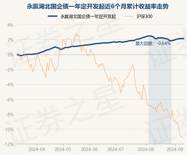 证券之星消息,9月11日,永赢湖北国企债一年定开发起最新单位净值为1.0527元,累计净值为1.068元,较前一交易日上涨0.0%。历史数据显示该基金近1个月下跌0.16%,近3个月上涨0.66%,近6个月上涨2.12%,近1年上涨5.03%。该基金近6个月的累计收益率走势如下图: