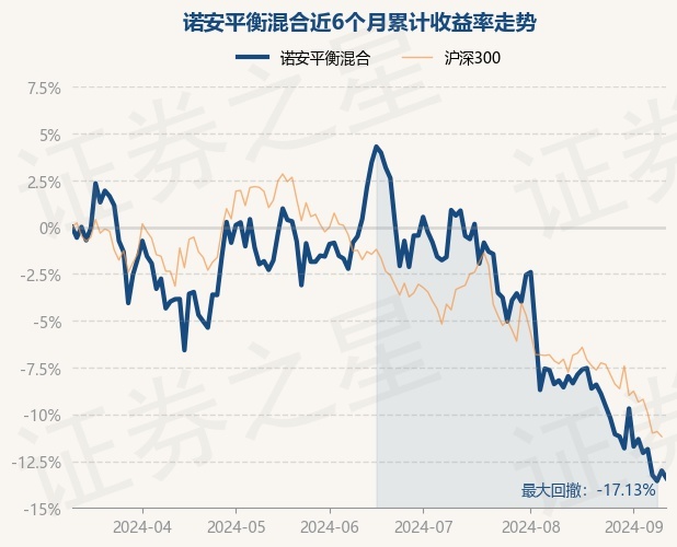 证券之星消息,9月11日,诺安平衡混合最新单位净值为0.922元,累计净值为3.182元,较前一交易日下跌0.46%。历史数据显示该基金近1个月下跌5.69%,近3个月下跌12.69%,近6个月下跌13.41%,近1年下跌18.69%。该基金近6个月的累计收益率走势如下图: