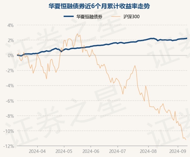 证券之星消息,9月11日,华夏恒融债券最新单位净值为1.1878元,累计净值为1.3339元,较前一交易日上涨0.04%。历史数据显示该基金近1个月上涨0.15%,近3个月上涨0.94%,近6个月上涨2.24%,近1年上涨4.54%。该基金近6个月的累计收益率走势如下图: