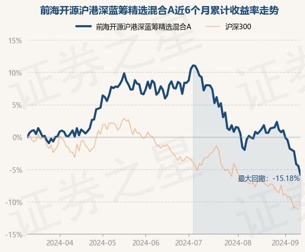 证券之星消息,9月11日,前海开源沪港深蓝筹精选混合A最新单位净值为0.9845元,累计净值为1.1455元,较前一交易日下跌1.39%。历史数据显示该基金近1个月下跌5.73%,近3个月下跌11.59%,近6个月下跌5.81%,近1年下跌13.21%。该基金近6个月的累计收益率走势如下图:
