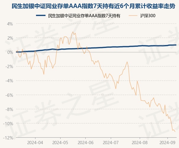 证券之星消息,9月11日,民生加银中证同业存单AAA指数7天持有最新单位净值为1.0386元,累计净值为1.0386元,较前一交易日上涨0.0%。历史数据显示该基金近1个月上涨0.13%,近3个月上涨0.42%,近6个月上涨0.98%,近1年上涨2.06%。该基金近6个月的累计收益率走势如下图: