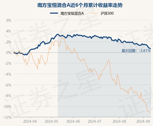 证券之星消息,9月11日,南方宝恒混合A最新单位净值为1.0692元,累计净值为1.0692元,较前一交易日下跌0.11%。历史数据显示该基金近1个月下跌1.21%,近3个月下跌2.37%,近6个月上涨0.66%,近1年上涨1.38%。该基金近6个月的累计收益率走势如下图: