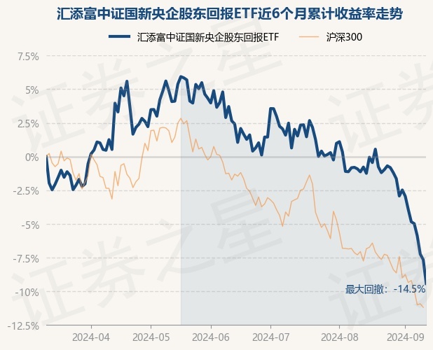 证券之星消息,9月11日,汇添富中证国新央企股东回报ETF最新单位净值为0.8947元,累计净值为0.9107元,较前一交易日下跌1.92%。历史数据显示该基金近1个月下跌8.59%,近3个月下跌11.97%,近6个月下跌9.42%,近1年下跌8.55%。该基金近6个月的累计收益率走势如下图: