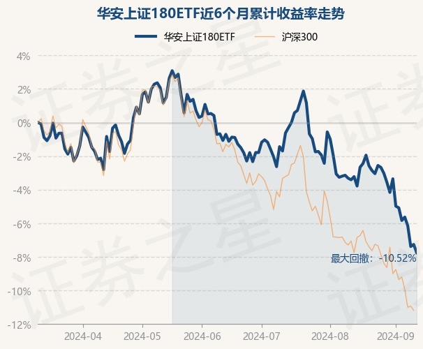 证券之星消息,9月11日,华安上证180ETF最新单位净值为3.1002元,累计净值为3.4304元,较前一交易日下跌0.54%。历史数据显示该基金近1个月下跌4.59%,近3个月下跌7.1%,近6个月下跌7.75%,近1年下跌10.74%。该基金近6个月的累计收益率走势如下图: