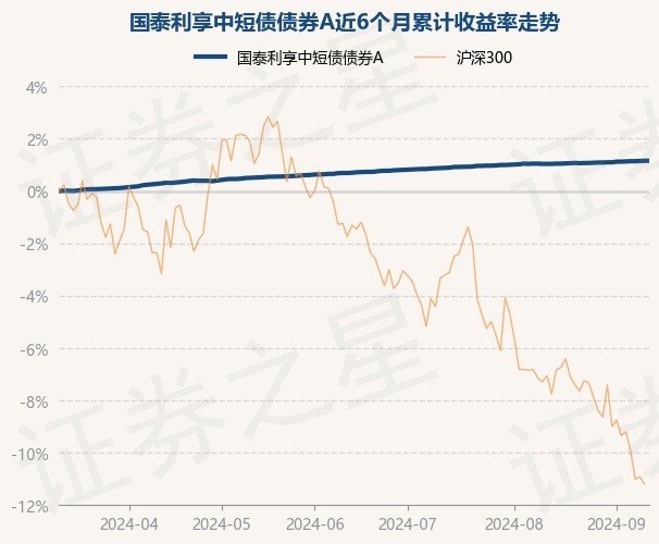 证券之星消息,9月11日,国泰利享中短债债券A最新单位净值为1.192元,累计净值为1.192元,较前一交易日上涨0.0%。历史数据显示该基金近1个月上涨0.12%,近3个月上涨0.47%,近6个月上涨1.15%,近1年上涨2.71%。该基金近6个月的累计收益率走势如下图: