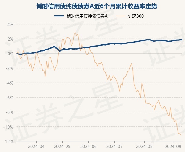 证券之星消息,9月11日,博时信用债纯债债券A最新单位净值为1.14元,累计净值为1.67元,较前一交易日上涨0.02%。历史数据显示该基金近1个月上涨0.11%,近3个月上涨0.88%,近6个月上涨1.88%,近1年上涨4.76%。该基金近6个月的累计收益率走势如下图: